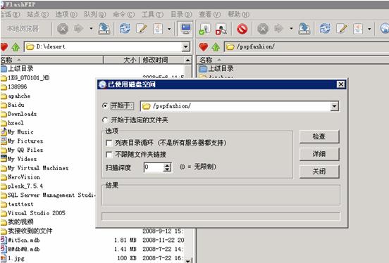 要想查看空间已经使用的大小,可以通过FTP软件FlashFXP自带的功能来准确查看空间已使用的大小.具体的步骤如下: