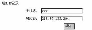 :点击“增加IP”等链接即可进入相关管理界面,进行解析记录管理。解析记录管理包括“增加IP”、“增加别名”及“增加邮件”三项管理功能。