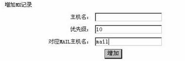图标,填写“主机名”,“优先级”,“对应MAIL主机名”后,点击